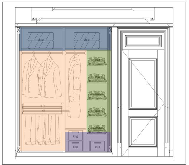 由于長輩疊放衣物較多,所以設計衣柜是建議多設計層板和抽屜。